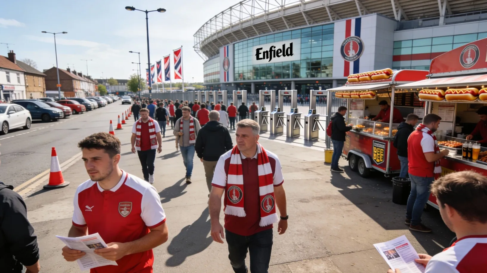 Энфилд находится не в самом центре, и поездка туда — уже часть опыта. В день игры транспорт заполняется болельщиками, и даже обычная автобусная поездка превращается в маленький фанатский сбор.